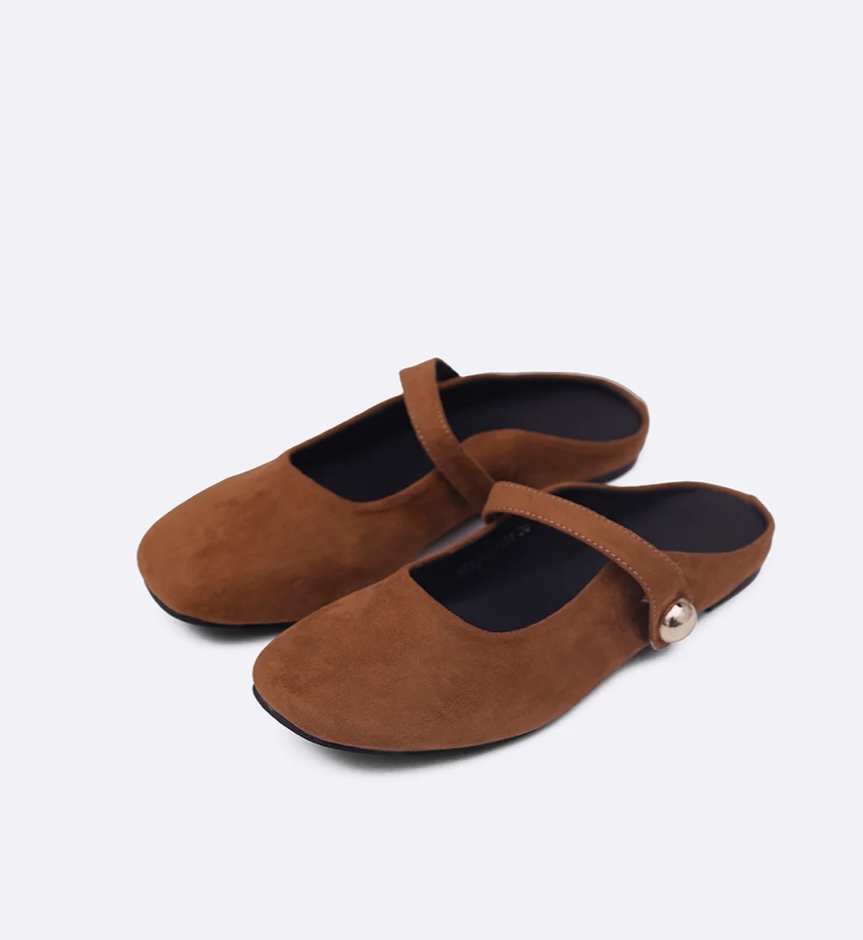 Classic Mules: Sleek and versatile, these mules are adorned with a round gold stud and designed with the same comfort-focused sole, making them a perfect everyday staple.