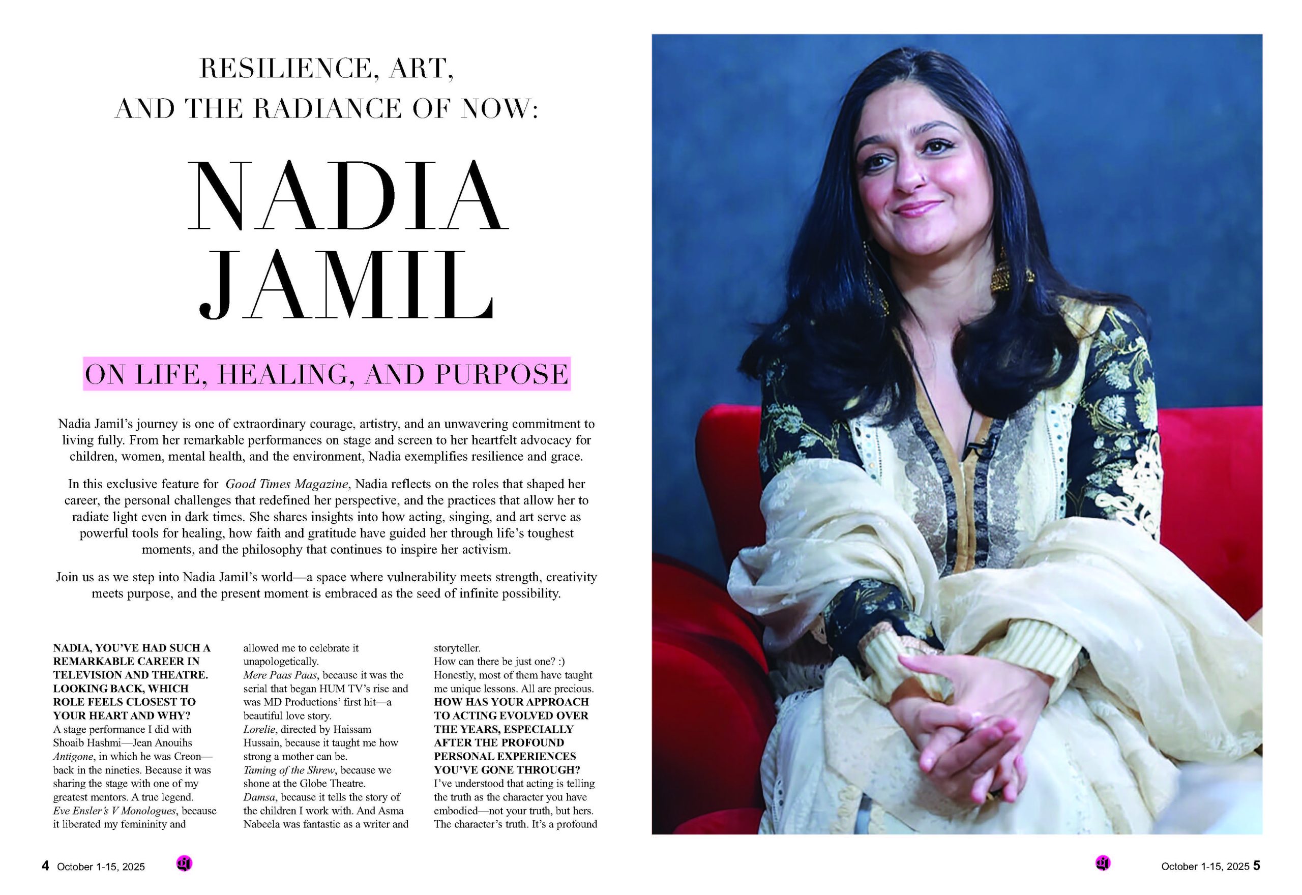 In this exclusive feature for Good Times Magazine, Nadia reflects on the roles that shaped her career, the personal challenges that redefined her perspective, and the practices that allow her to radiate light even in dark times. She shares insights into how acting, singing, and art serve as powerful tools for healing, how faith and gratitude have guided her through life’s toughest moments, and the philosophy that continues to inspire her activism.