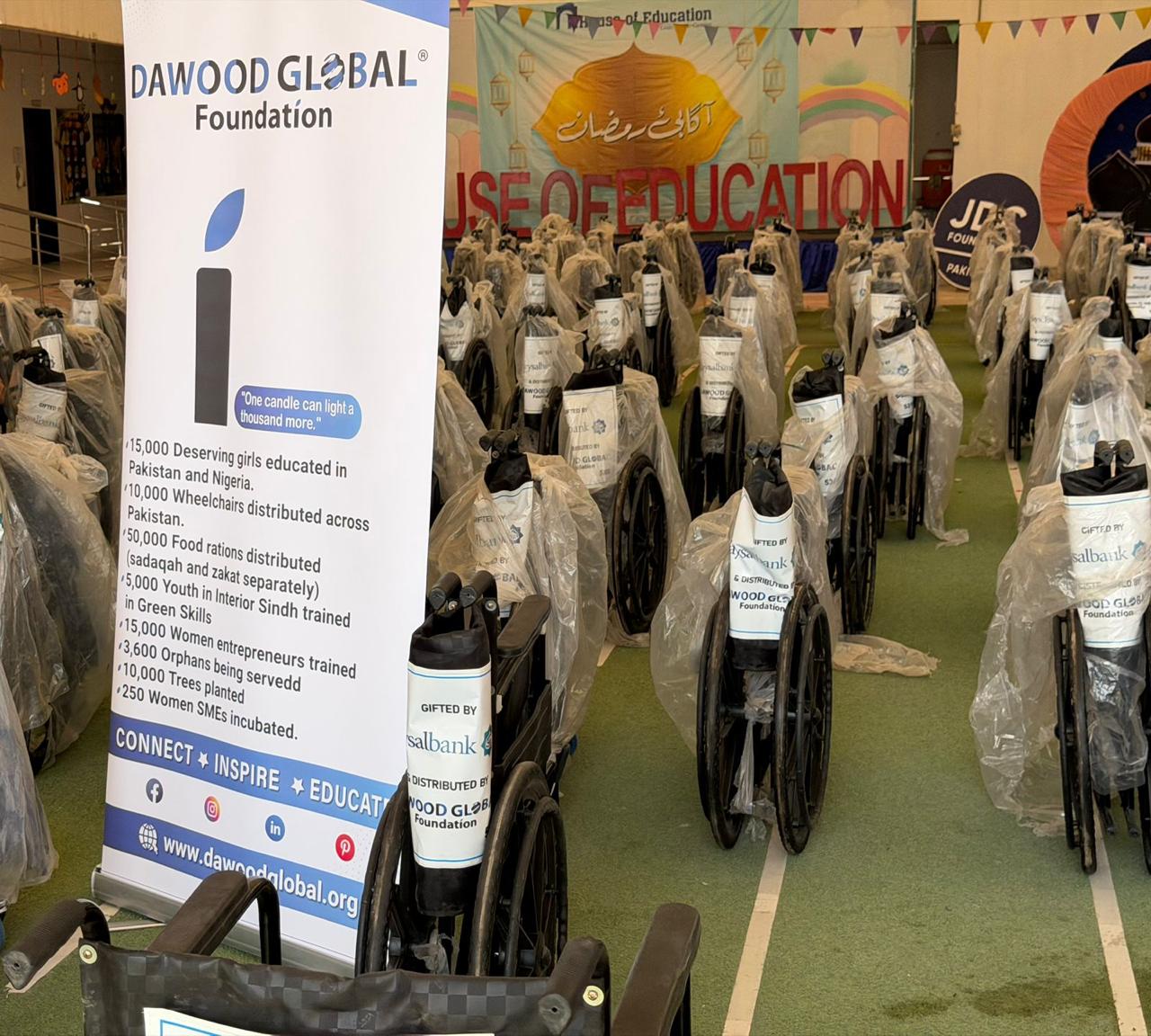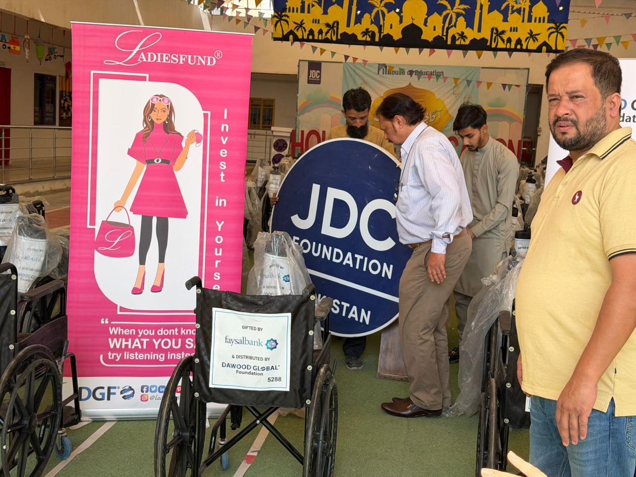 Karachi: Dawood Global Foundation and Faysal Bank Ltd. gift 100 wheelchairs to JDC, as part of Dawood Global’s initiative to distribute 10,000 wheelchairs across Pakistan. Tara Uzra Dawood, CEO, Dawood Global, along with Farah Asim, Head of Corporate Affairs, Faysal Bank, personally handed over the wheelchairs to Zafar Abbas, founder, JDC.