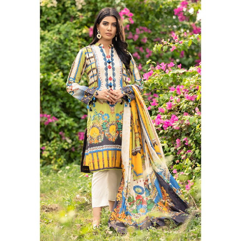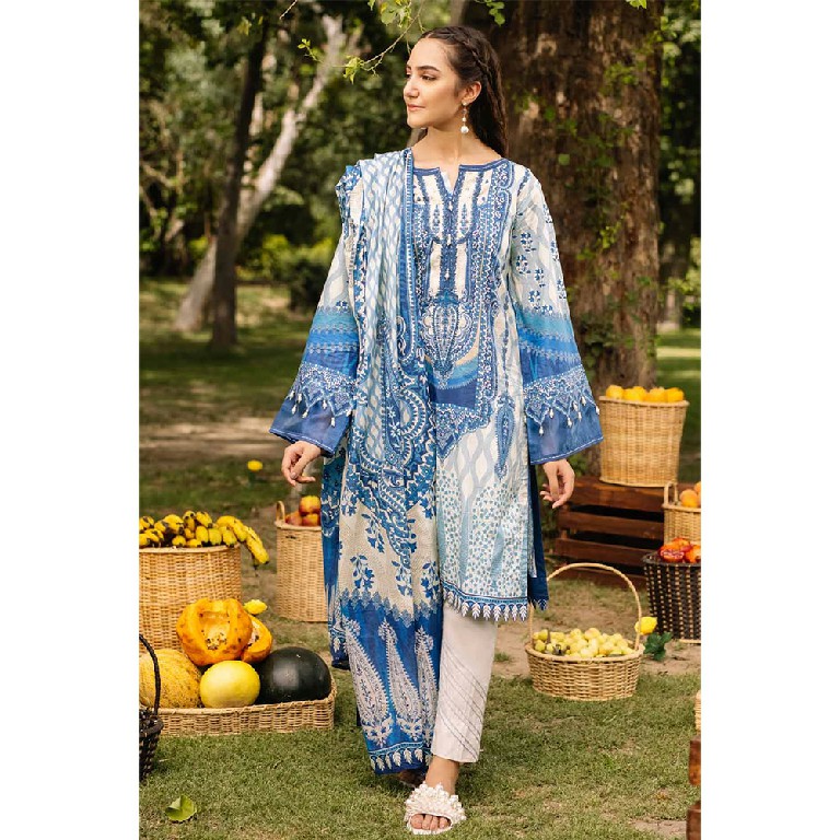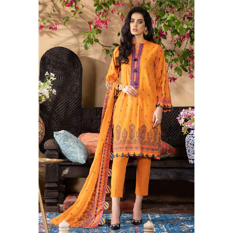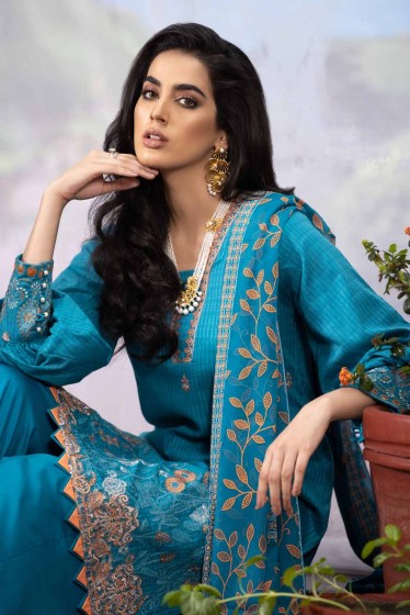 If nature is what inspires you, this 3-piece embroidered suit with chiffon dupatta is one that has to earn a place in your wardrobe as the elegance is just too captivating.