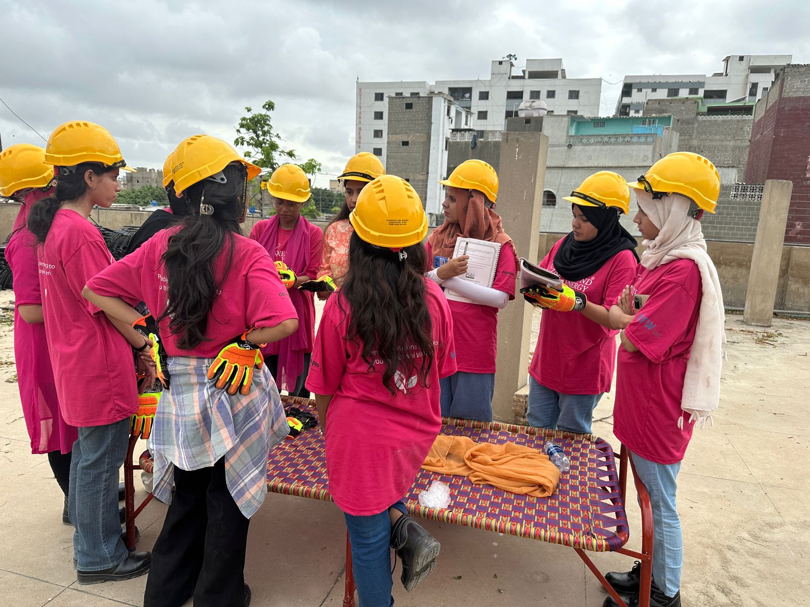 The 28 girls were engineers and engineering students from Dawood University of Engineering & Technology, NED University, and Usman Institute including Aimen Talha, Alina Malick, Alishba Khan, Amna Muktar, Areeba Nasir, Areeba Rashid, Muskan Iqbal, Arooba Iraqui, Eman Batool, Eng Iqra Gul, Fahmeen Murtaza, Farhat Anjum, Fatima Abbas, Hafiza Haya Reham, Iqra Jamali, Marium Afzal, Marium Nadeem, Minha Qureshi, Qirat Fatima, Rahimeen Haider Ali, Sabahat Maqbool, Sakina Batool, Samra Gul, Shagufta Badar, Sidra Laiq, as well as non-engineer Tara Uzra Dawood herself, who was also trained and certified by NED.