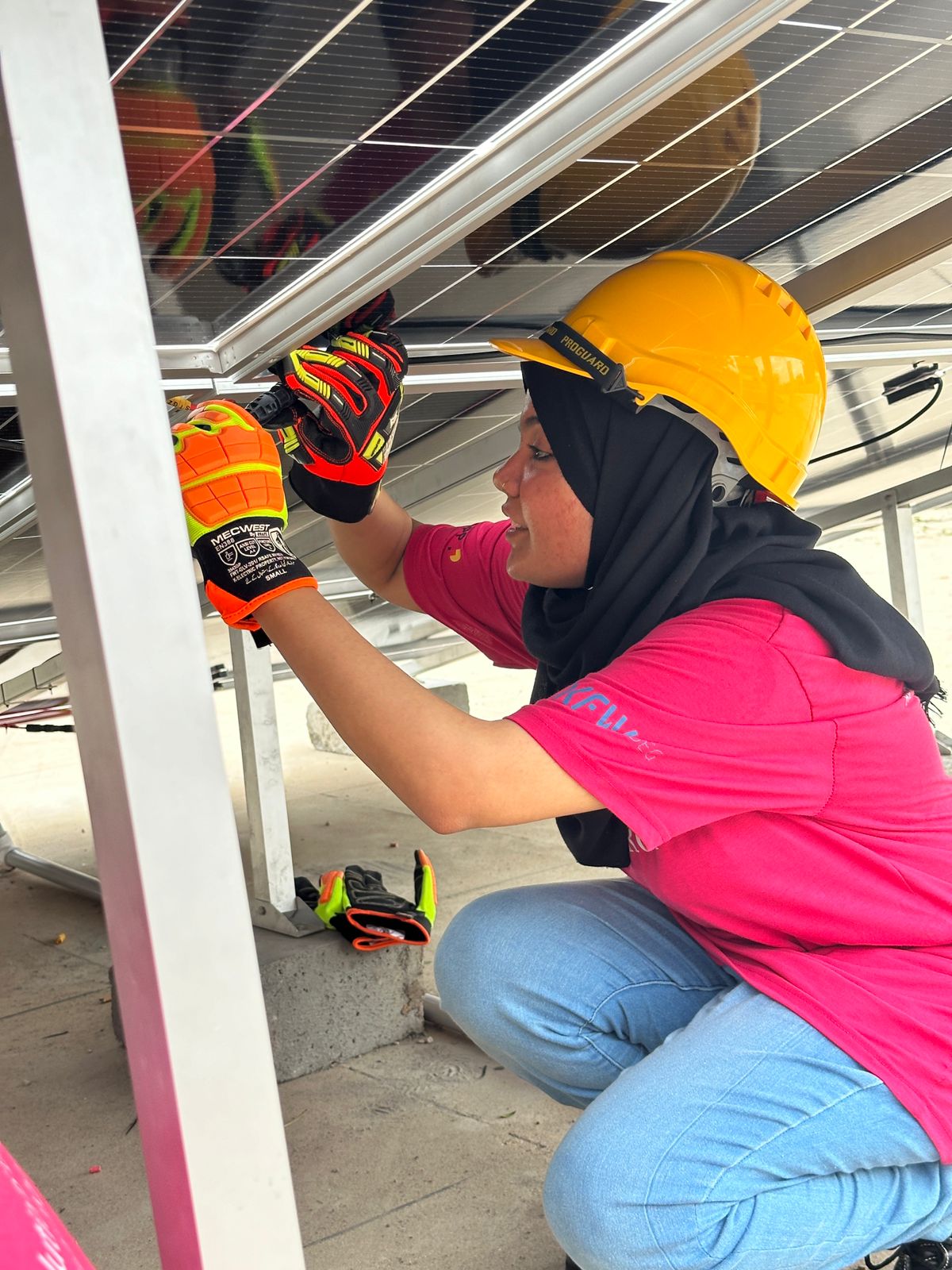 The vocational NED certified training of 28 women engineers was a project by Dawood Global Foundation (DGF) for women empowerment and inclusivity in the entire sector. LADIESFUND Energy Pvt. Ltd was the Implementation Partner for this project and with the support of KFW and developpp designed the training and modules as well as engaged these women as interns and installers and conducted the solar installation by this entire female team. The NED training in “Solar Roof Installation” conducted by Dr. Mohsin Aman was world class with cutting edge equipment and LADIESFUND Energy designed a top notch solar roof installation and system for the orphanage. There were 86 female engineers waitlisted for this course, and DGF plans to do its next batch with girls from Interior Sindh. With the support of KFW DEG Impulse and developpp, hands-on training for female engineers in the installation of the solar system at an orphanage, facilitated by five exceptional LADIESFUND female engineers – Areeba Rashid, Eman Batool, Farhan Anjum, Muskan Iqbal, and Rahimeen Haider Ali – who became the first women in Pakistan’s history to be paid for solar roof installation and they are LADIESFUND Energy installers.