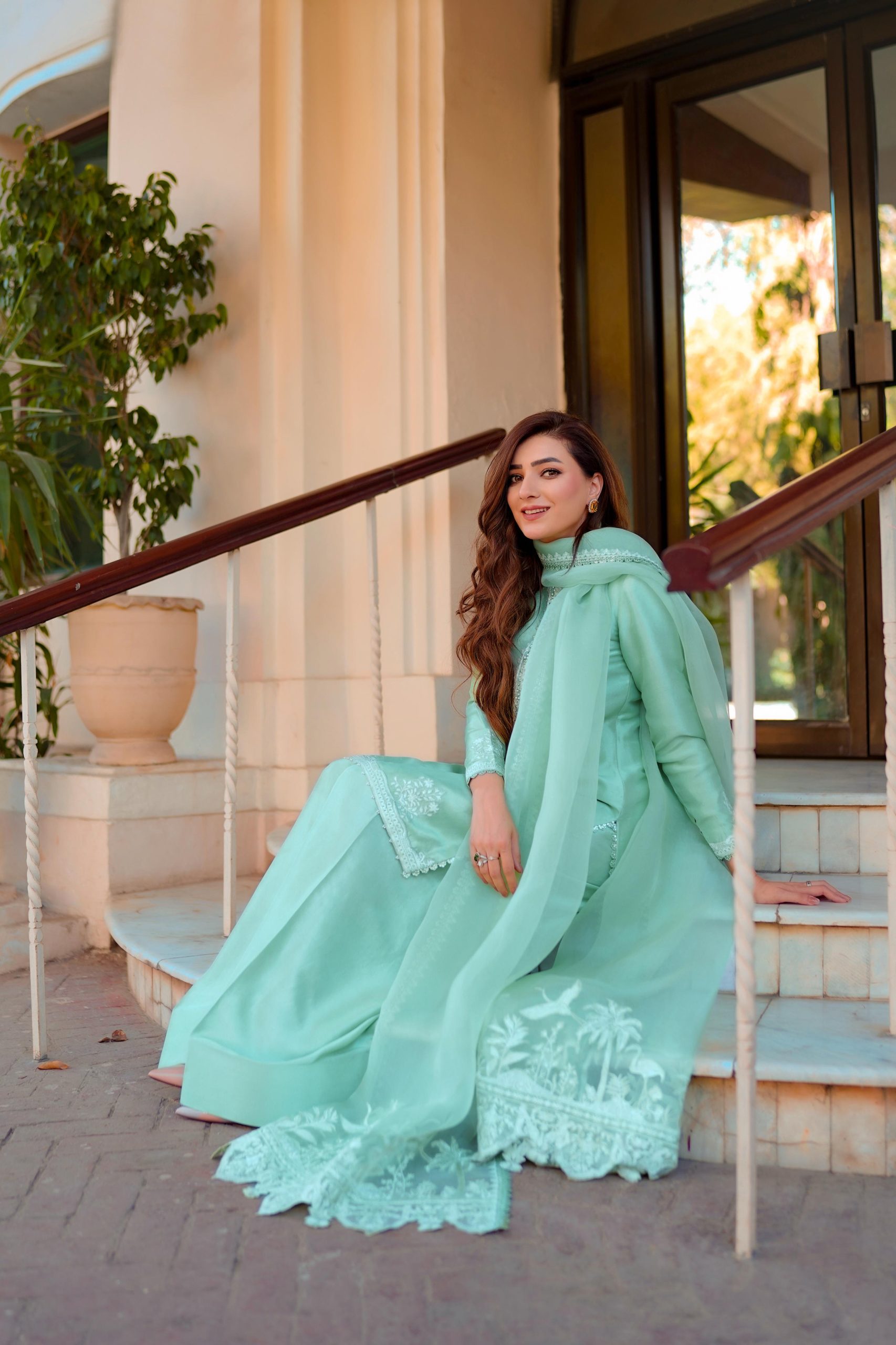 It’s not hard to understand why. For starters, the clothes walk the line between tradition and personal style in a way few local brands manage. Babar Azam wore a pistachio-green embroidered kurta with sneakers — a nod to sport, youth, and confidence. Mahira Khan went in the opposite direction with a crisp white gharara, which felt almost stripped-back by MNR standards. Both looks worked because they weren’t trying too hard.There’s also a sense that MNR has evolved. Earlier collections leaned heavier into maximalism, but this Eid saw a broader vocabulary.The inclusion of younger family members speaks to a shift: designers like MNR are now responding to a new kind of consumer demand — looks that feel special but still practical for family photos and actual wear.It wasn’t just the variety of people who wore MNR — it was how differently they wore it.These weren’t cookie-cutter PR placements. The clothes looked lived-in, chosen — not styled by stylist .