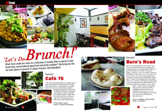 “Café 76 has been aptly described as a modish café, set against the backdrop of bustling Karachi. The sunlit, indoor atrium rooms are a great place for a romantic brunch. The café serves all the brunch essentials, a particular treat being the Sunday roast: “a traditional British item consisting of roast beef gravy, assorted vegetables and Yorkshire pudding.” Coffee snobs can also be at ease as Cafe 76 serves some of the best coffee, and has on staff some seriously talented baristas.