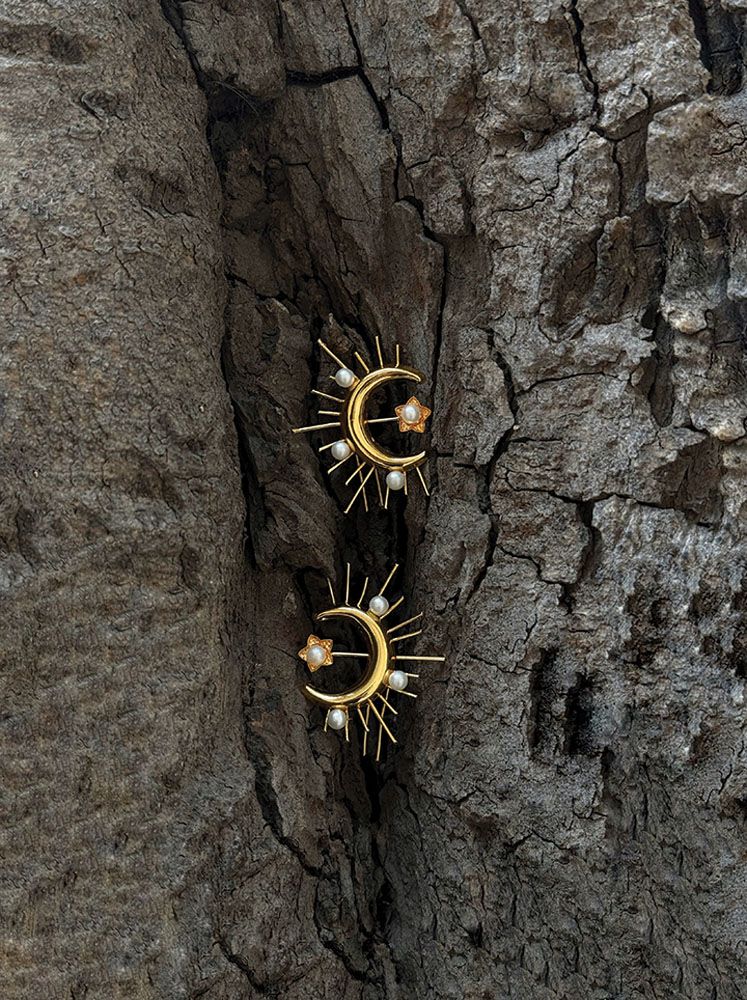 I chose brass plated in 22-karat gold because I wanted my pieces to feel luxurious but still be accessible. Brass has strength and warmth, and the gold plating adds that richness without making it unreachable. For me, it’s about creating jewellery that feels special and lasting – something you can treasure without it feeling out of reach.