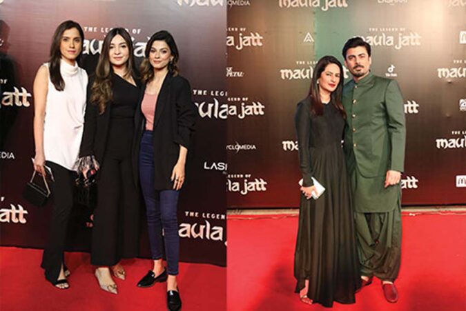 Maula Jatt launched with a lot of fanfare at Cue Cinemas. Mahira Khan, Fawad Khan and the entire cast of the film were in attendance.